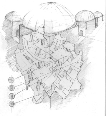 As I attempt to reconstruct their reference labyrinth from these ruins, and prepare the complete Codex of the Synapse, I am resigned to the fact that I am reconstructing only one possible permutation of this text from among infinitely many. Like the reconstruction of any ruin, the process requires many patches for continuity's sake, to bridge the gaps of what was lost. Strangely, this seems to be part of the tradition intended by The Keepers, another aspect of the Labyrinth's dimensions, which they call the Chain of Commentary.